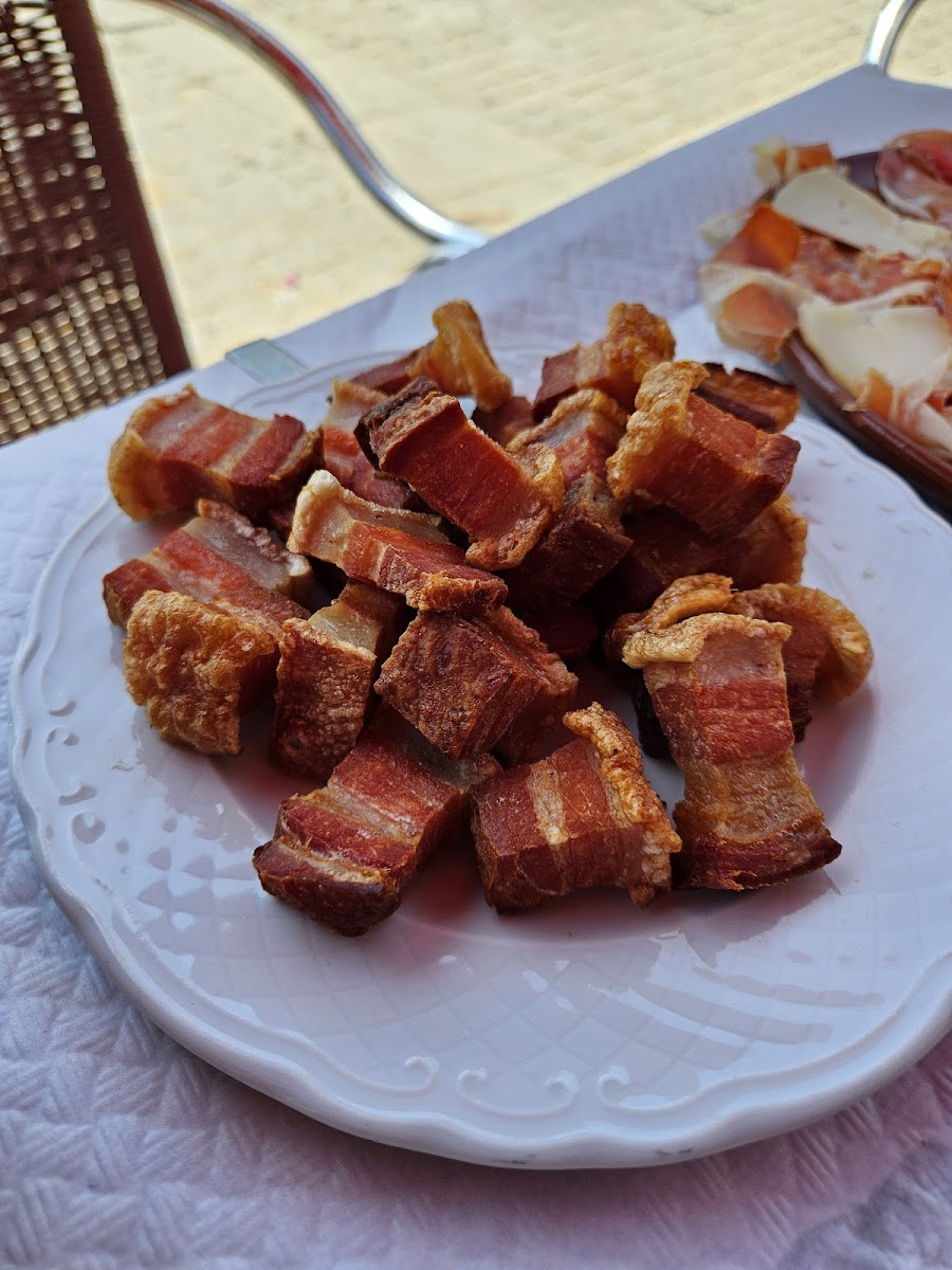 Un restaurante de 10. Las raciones estaban buenísimas, la morcilla de Burgos, especial, y los torreznos, espectaculares. Lástima que tuvimos que dejar parte del embutido y de los torreznos porque las raciones eran enormes. El precio acorde a la calidad, sin clavadas absurdas.